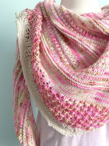 The sweater is knit seamlessly in the round from the top down and the body is gently shaped into an A-line by changing needle sizes.