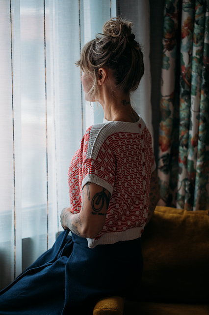 A cute summer top, ready to do double duty in your travel wardrobe! Wear buttons in the back for a sweet top paired with high-waisted trousers, or buttons in the front over your favorite summer dress. This cardigan is worked flat from the bottom up and can be knit to either a full or cropped length. The shoulders are shaped with short rows and finished using the 3 needle bind off. The sleeves & button band are then picked up from the body and knit.