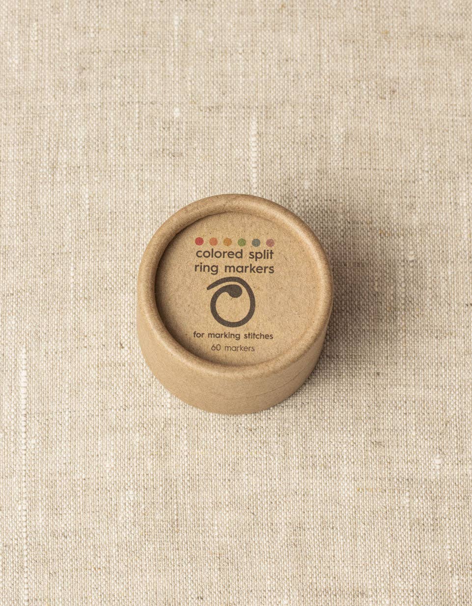 Split Ring steel stitch markers. 10 each of 6 colors (60 total) - Made of nylon coated steel (clings to magnets) - 1/2 in X 5/8 in (1.27 cm X 1.5875 cm) Our latest addition to the Cocoknits Stitch Marker collection is designed to be easy to use on the fly! A simple open loop with a pointed leg that will nestle into your stitches and stay while you're working - easy to remove and reposition while creating increases, counting rows or repeats, or working cables. The steel construction is sturdy but flexible so the opening can be adjusted to accommodate the size of yarn or collection of stitches being marked. And they are nylon coated steel like our other stitch markers, so they cling to the Maker's Keep or any magnet.