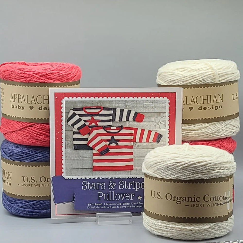 Kit includes sufficient yarn to complete project. Appalachian Baby U.S. Organic Cotton Yarn, Sport Weight (100% Cotton, 3oz:194 yds/177 m)